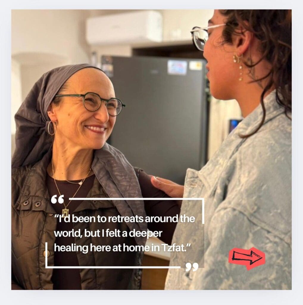 Since then, Jen has been traveling, sharing their family’s passionate love for Eretz Yisrael, Am Yisrael and Torat Eretz Yisrael. Together they also founded Beit Binyamin, a retreat center in Tzfat, aiming to give respite, recovery and rejuvenation to those directly affected by the war.